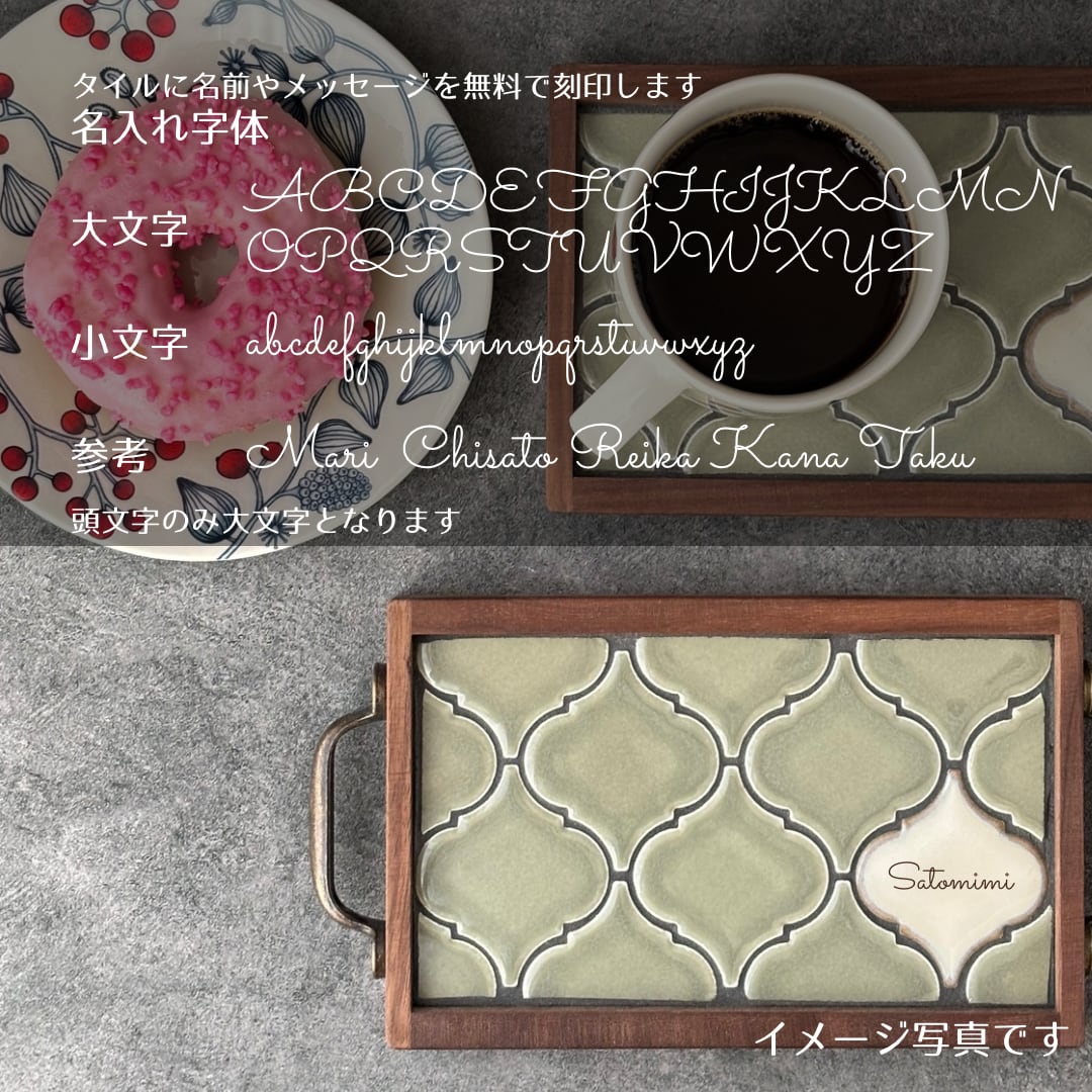 タイルにお好きな文字を刻印できます